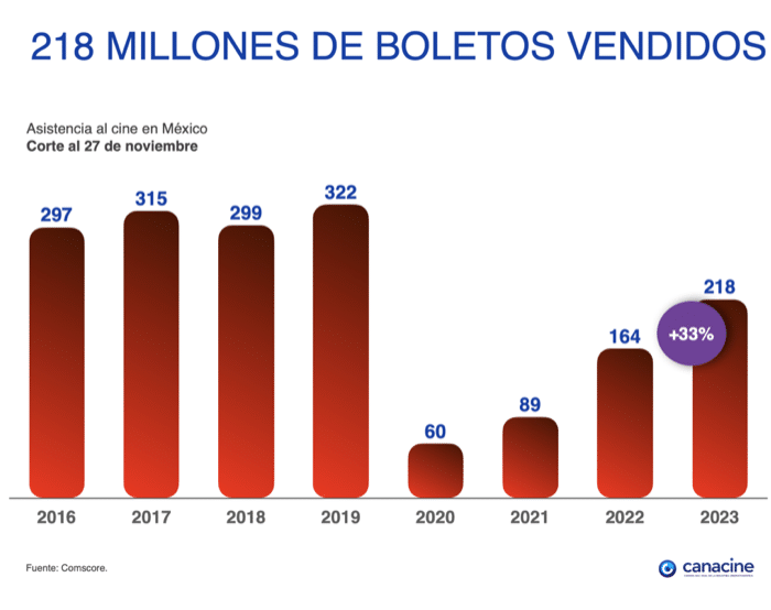El cine mexicano tuvo una participación de la taquilla global de 4.8%, de acuerdo con datos de Comscore, y un aumento de 13% del número de películas estrenadas comercialmente en México al llegar a 92.